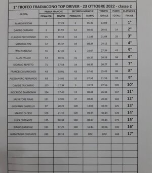 23 Ottobre 2022 1° Trofeo Fradiacono Top Driver